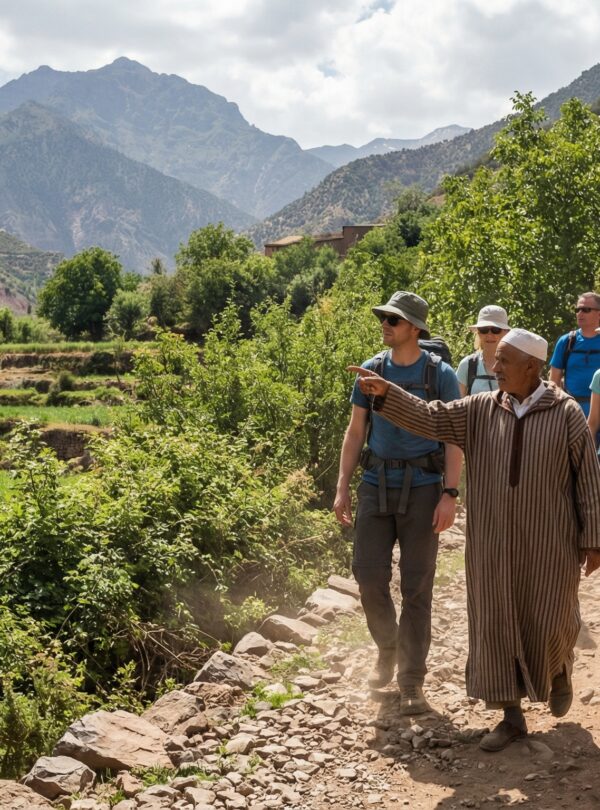 Located just 80 km from Marrakech, the charming mountain village of Setti Fatma marks the starting point of a guided hike to explore the famous Seven Waterfalls. Accompanied by a local guide, you will walk through scenic mountain trails (approximately 2 hours – comfortable walking shoes recommended) and enjoy spectacular panoramic views of cascading waterfalls and rocky cliffs.