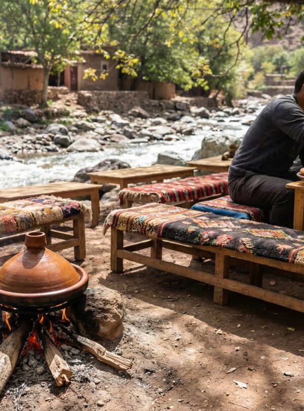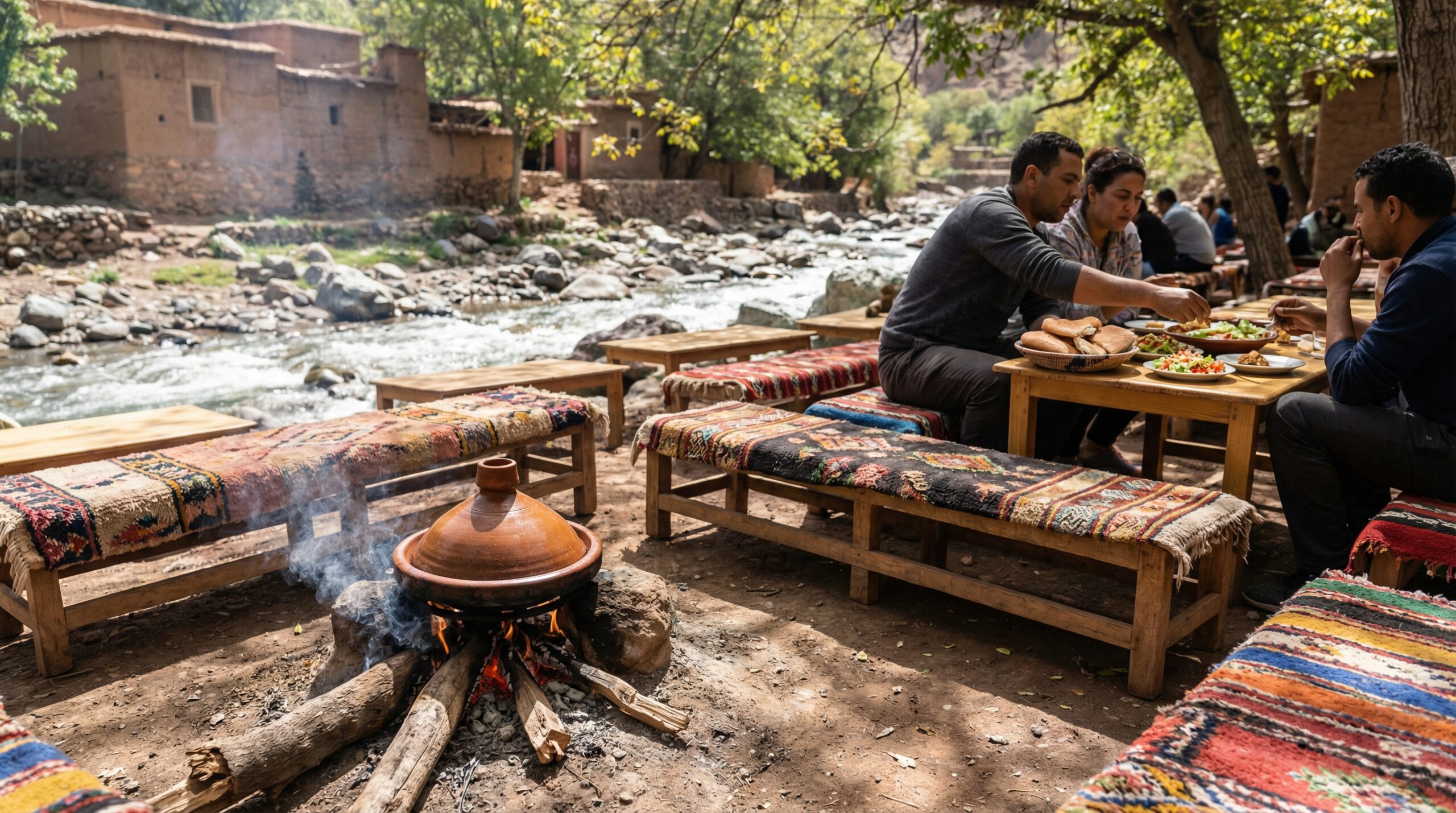 Enjoy a relaxing lunch by the river (Oued) in a traditional local restaurant, where you can savor delicious Moroccan tagines slow-cooked over a wood fire.